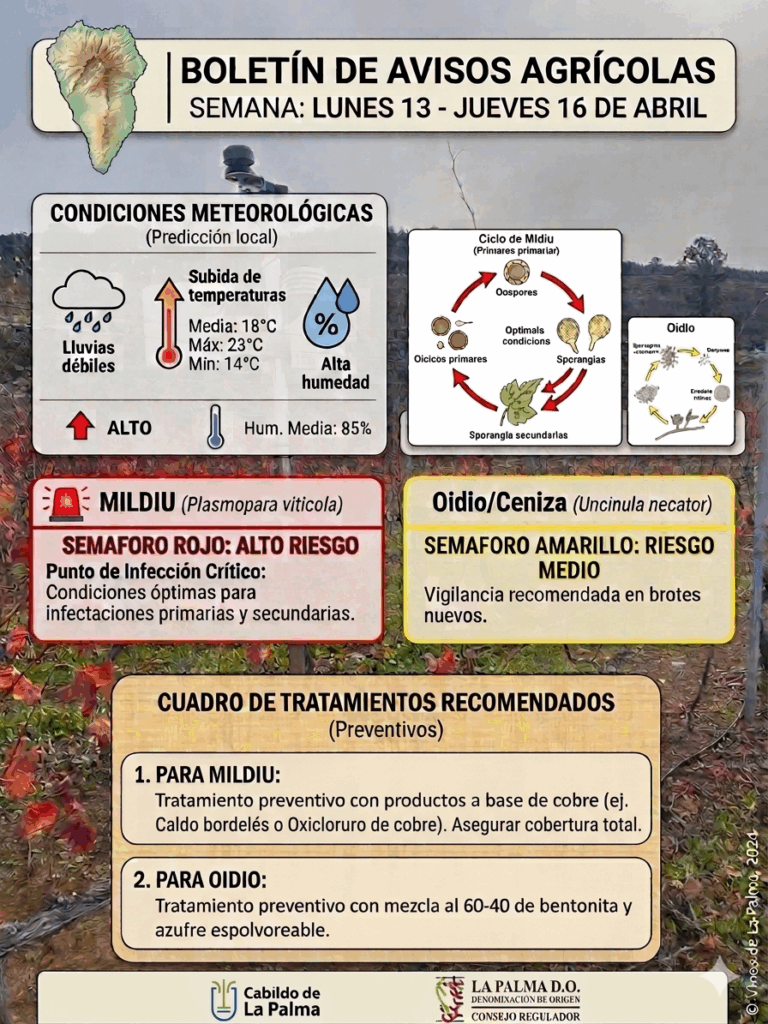 Boletín de avisos fitosanitarios en viñedo del 13 al 17 de abril de 2026