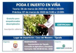 Curso gratuito para desempleados empadronados en Tijarafe. Teoría: 6 de marzo del 2020 de 16:00 a 20:00 horas. Prácticas: 7...