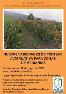 El Servicio de Agricultura, Ganadería y Pesca del Cabildo de la Palma organiza «Nuevas variedades de próteas alternativa para zonas...
