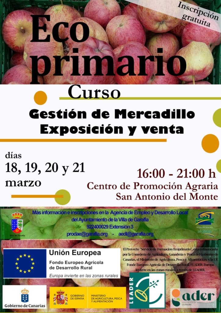 El Ayuntamiento de la Villa de Garafía abre inscripción del curso «Gestión de mercadillo. Exposición y Venta» dentro del proyecto formativo Ecoprimario