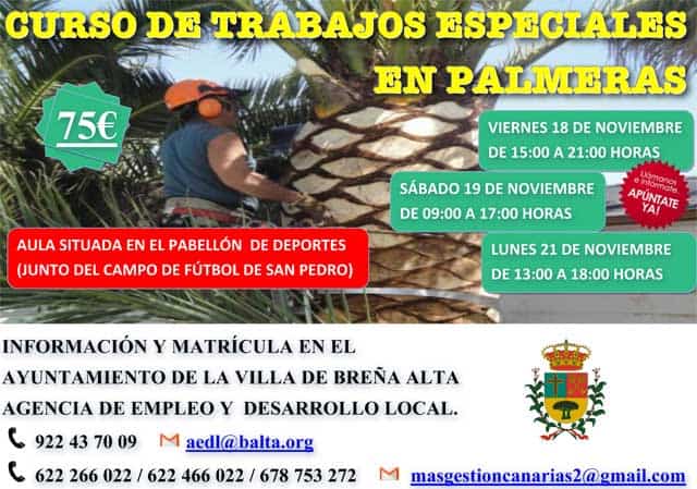 Cursos de trabajos especiales en palmeras en Breña Alta.
