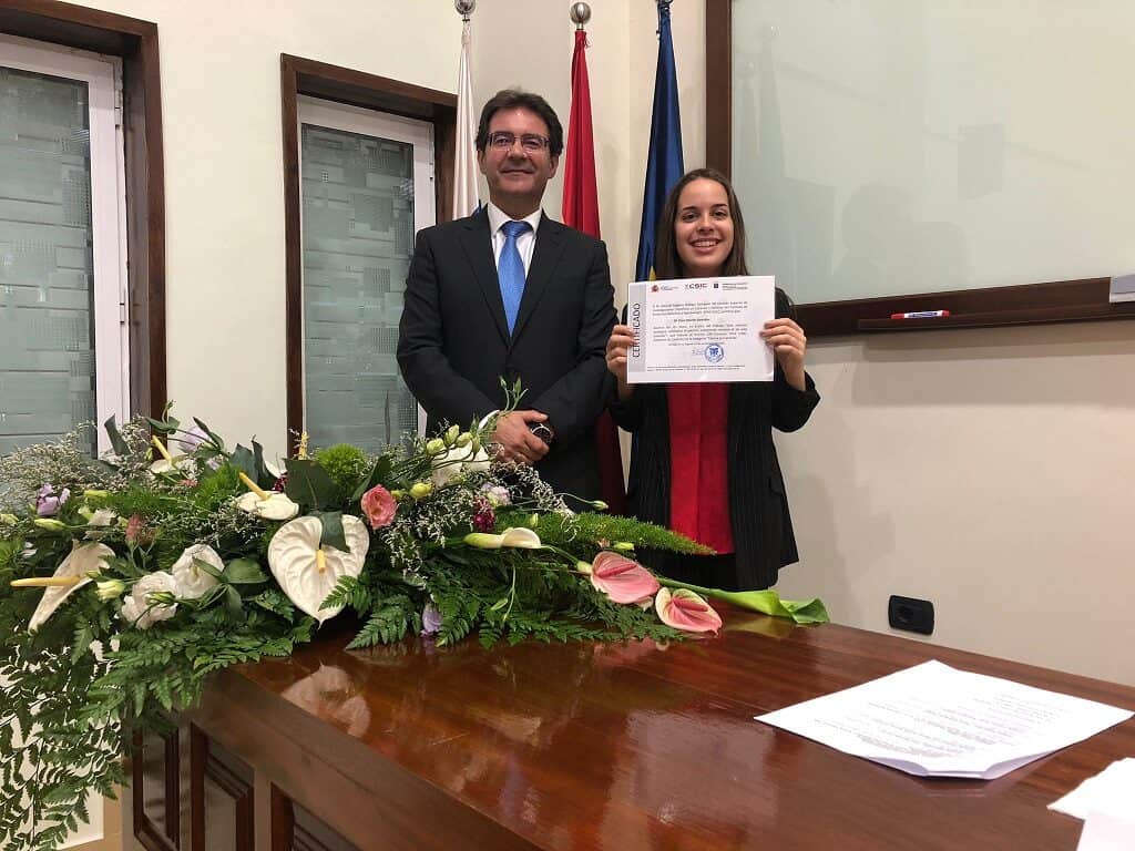El consejero insular de Agricultura, Ganadería y Pesca del Cabildo de La Palma, José Adrián Hernádez, ha transmitido en nombre de la institución insular su felicitación a la joven estudiante del IES Villa de Mazo, Clara Martín González, ganadora del Premio CSIC-Canarias 2019 de divulgación científica en la modalidad Ciencia en Canarias, que recibió ayer en La Laguna, Tenerife.
