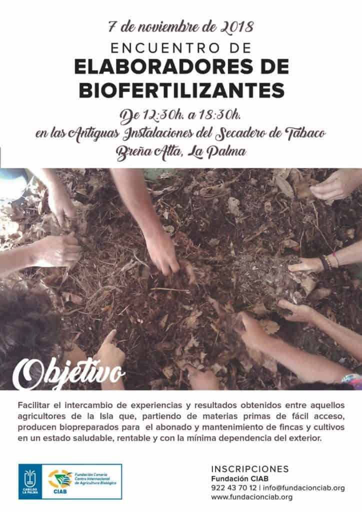 Este encuentro de agricultores/as elaboradores/as de biopreparados fertilizantes se celebrará el día 7 de noviembre del 2018 en el Antiguo Secadero de Tabaco – Breña Alta en horario de 12:30 a 18:30, trata de facilitar un encuentro entre agricultores/as de la isla que partiendo de materias primas de fácil acceso producen biopreparados para el abonado y mantenimiento de las fincas y cultivos en un estado saludable, rentable y con la mínima dependencia del exterior. La intención es intercambiar experiencias y resultados obtenidos.