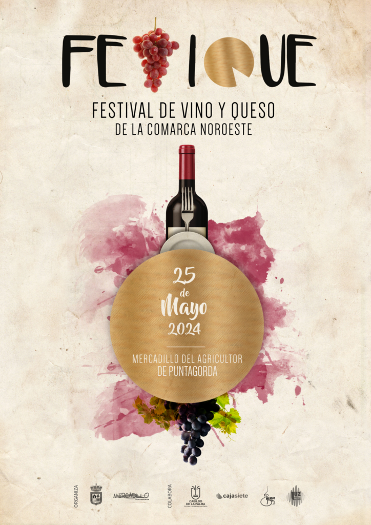 “FEVIQUE” es uno de los principales certámenes para la exposición de la producción vitivinícola y quesera de la comarca con un programa de actividades en el Mercadillo del Agricultor de Puntagorda que arranca a las 14:00 horas y que se prolongará hasta pasada la medianoche. Música en directo, actividades infantiles y degustaciones con los mejores maridajes de vinos y quesos, son reclamo en esta cita a la que se prevé que acudan residentes y visitantes llegados de los 14 municipios palmeros.