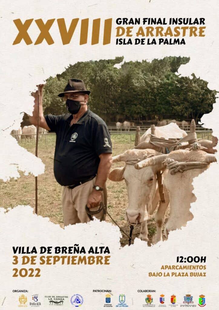 La Villa de Breña Alta acogerá el próximo 3 de septiembre, a partir de las 12.00 horas, la XXIII Gran Final de Arrastre Isla de La Palma. La competición, que se celebrará en la zona de aparcamientos de los bajos de la Plaza Bujaz, está organizada por el Ayuntamiento de Breña Alta, El Club de Arrastre La Canga y la Federación de Arrastre Canario.