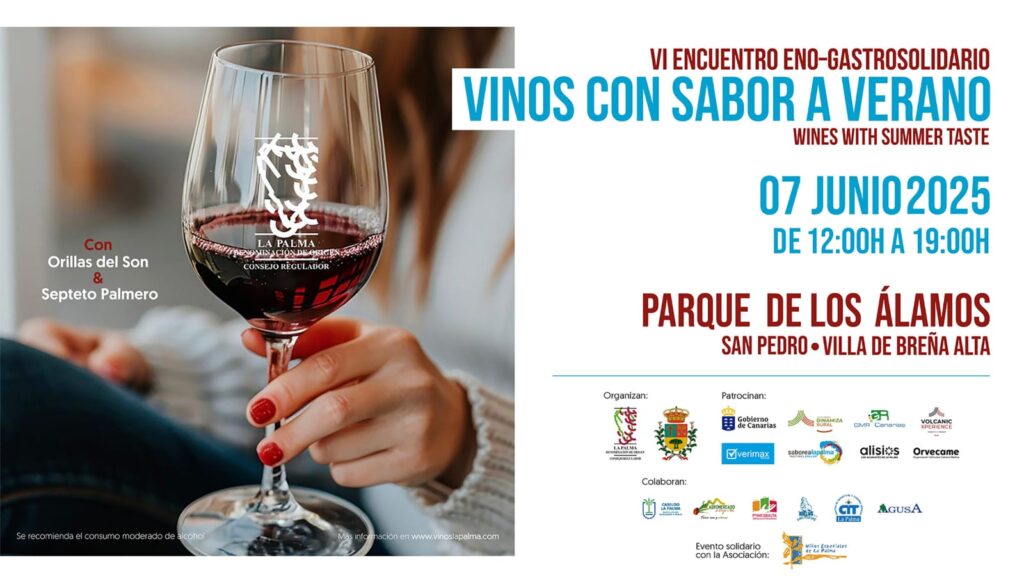 Desde el Consejo Regulador de la Denominación de Origen de Vinos La Palma, el Ayuntamiento de la Villa de Breña Alta y el resto de entidades colaboradoras, les invitan a participar y disfrutar de este VI Encuentro Enogastrosolidario, cuya recaudación se destinará a la asociación NEP (Niños Especiales de La Palma).