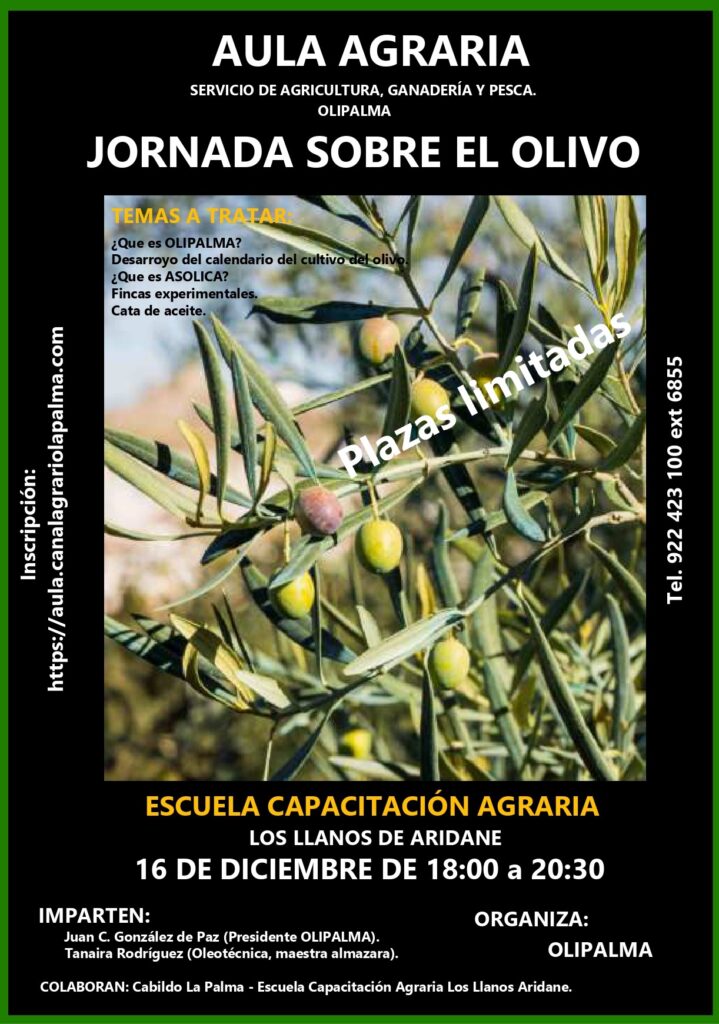 Conoce más sobre el cultivo del olivo en Canarias en una charla informativa que abordará aspectos clave del calendario del olivo y la producción de aceite.