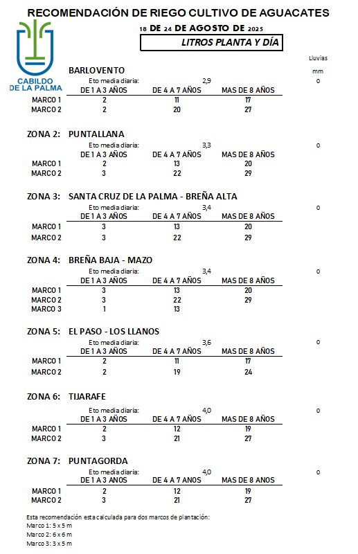 Recomendación de riego en Aguacate del 18 al 24 de agosto de 2025