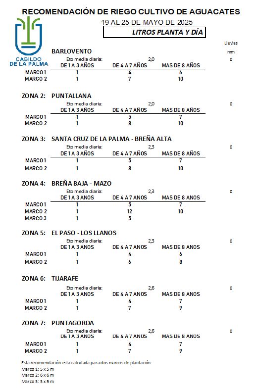 Recomendación de riego en Aguacate del 19 al 25 de mayo de 2025