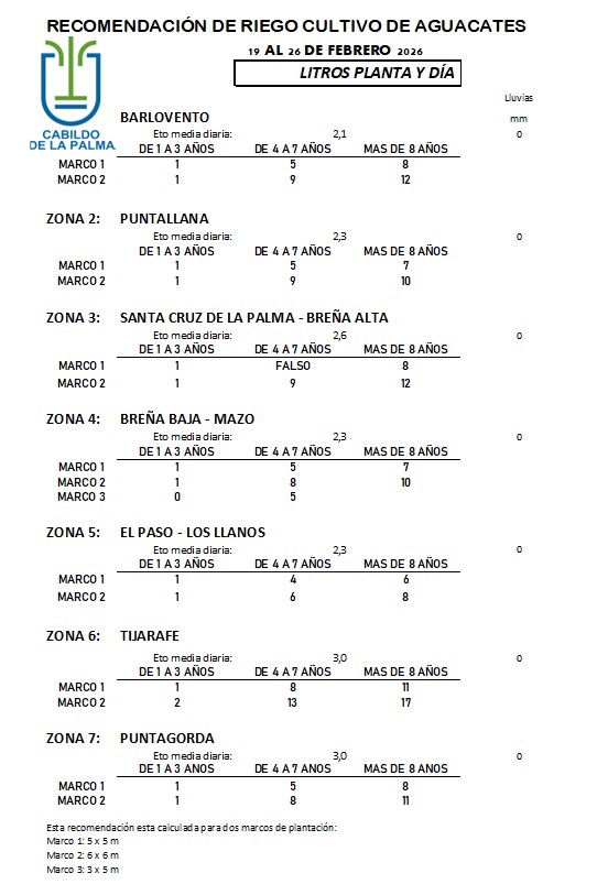 Recomendación de riego en Aguacate del 19 al 26 de febrero de 2026