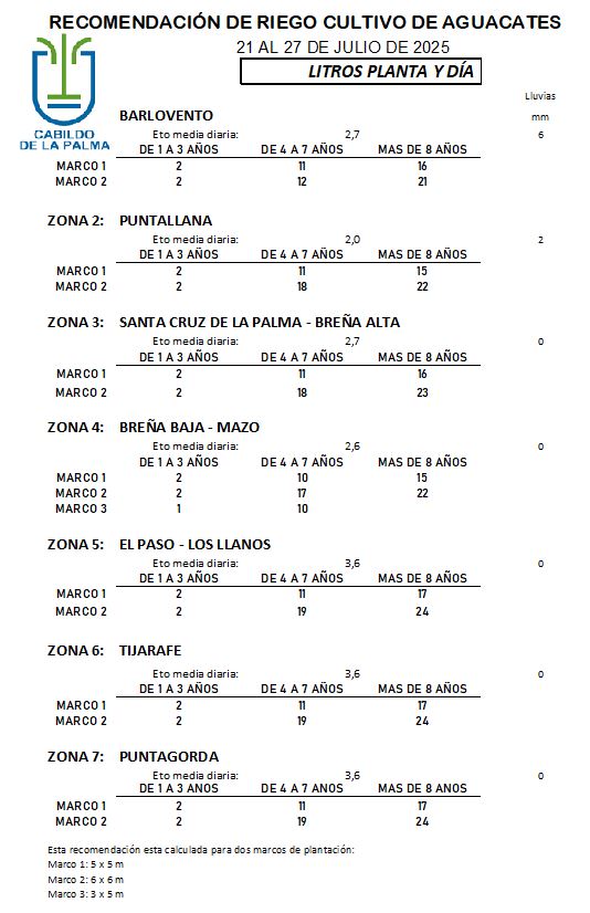 Recomendación de riego en Aguacate del 21 al 27 de julio de 2025