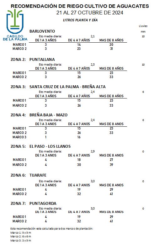 Recomendación de riego en Aguacate del 21 al 27 de octubre de 2024