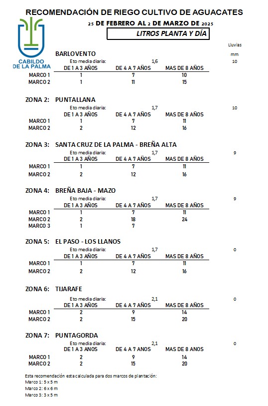 Recomendación de riego en Aguacate del 25 de febrero al 2 de marzo de 2025