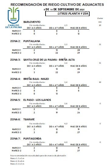 Recomendación de riego en Aguacate del 8 al 14 de septiembre de 2025