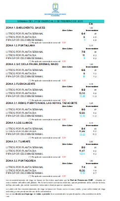 Las recomendaciones de riego se basan en los datos aportados por la Red de Estaciones SIAR, situadas en cotas medias del cultivo del plátano. Por lo tanto estás son datos estándar, que dependiendo de la cota de la finca, del tipo de suelo y la red de suministro estos datos tendrán que ser ajustados.