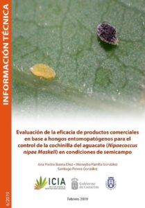 Evaluación de la eficacia de productos comerciales en base a hongos entomopatógenos para el control de la cochinilla del aguacate...