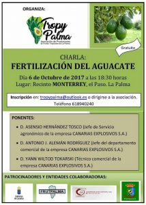 Charla: Fertilización del Aguacate. Día 6 de octubre a las 18:30 horas Recinto Monterrey en El Paso. Organiza Tropy Palma