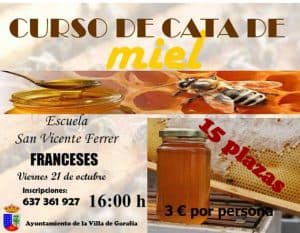 Curso de cata de miel el viernes 21 de octubre a partir de las 16:00 horas en Franceses, plazas limitadas.