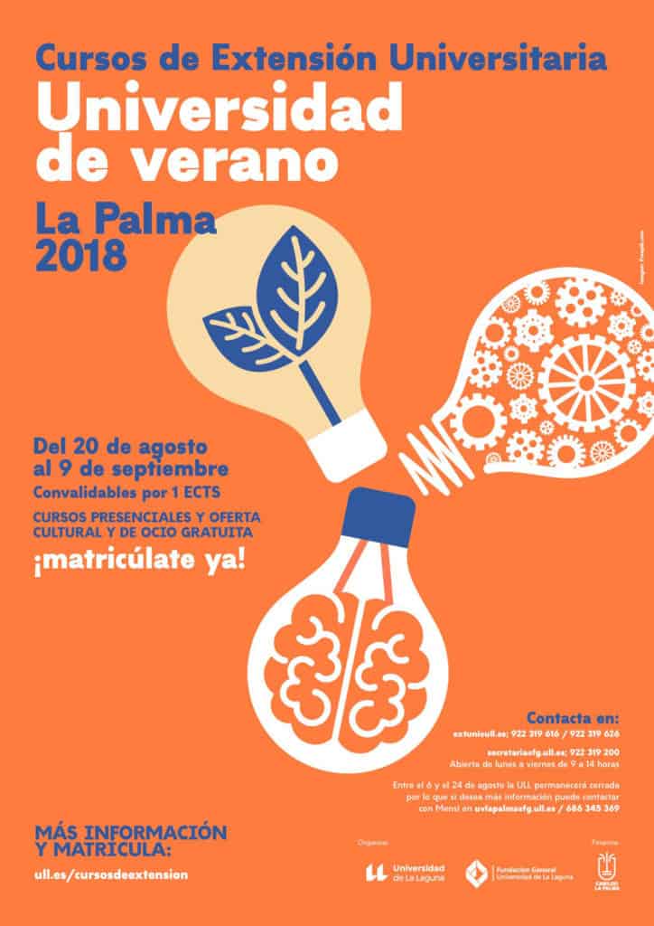 La Universidad de Verano de La Palma 2018 está organizada por la Consejería de Educación del Cabildo Insular y el Vicerrectorado de Relaciones con la Sociedad de la ULL y su Fundación General. Los cursos que la componen forman parte de la programación de Cursos de Extensión Universitaria Universidades Insulares de Verano 2018.