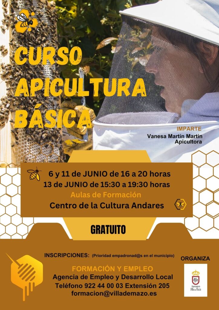 El Ayuntamiento de Villa de Mazo impulsa el sector ganadero con un curso de apicultura básica, impartido por la profesional de este área Vanessa Martín Martín. Estas jornadas formativas tendrán lugar en el Centro Cultural Andares entre el 6 y 11 de junio, en horario de 16:00 a 20:00 horas, y el día 13 de junio de 15:30 a 19:30 horas.