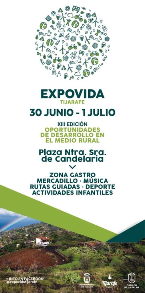 Los actos comenzarán el viernes 29 con la visita guiada a Finca Autarca, donde se abordará la autosuficiencia energética, aplicada a la agroecología. La feria gira en torno al lema “Oportunidades de desarrollo en el medio rural”, abrirá sus puertas el sábado 30 de junio de 11:00 a 20:00 horas y el domingo 1 de julio de 10:00 a 15:00 horas. A lo largo del fin de semana, en la Plaza de Nuestra Señora de Candelaria y aledaños, tendrán lugar actividades como Tijarafe Saludable – con sesiones de Quingong, Tai Chi y Strech Therapy- o Tijarafe Gastronómico –promovido por el proyecto local Tijarafe Rural Food-, donde se podrán degustar tapas hechas con productos del municipio, así como vinos y cerveza artesanal. Todo ello, acompañado de talleres, actividades infantiles, observaciones astronómicas y paseos en coche eléctrico. La nota musical la pondrán Orillas del son, Fran Ramos el sábado y Vrandán el domingo.